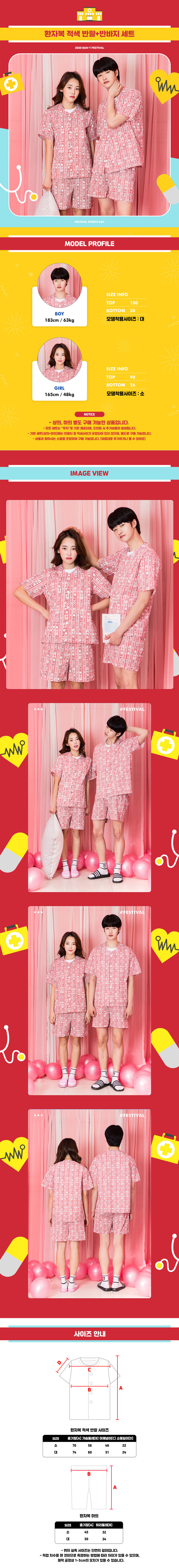 ST825C 환자복 [레드][반팔+반바지]